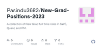 GitHub - Pasindu3683/New-Grad-Positions-2023: A collection of New Grad full time roles in SWE, Quant, and PM. · GitHub