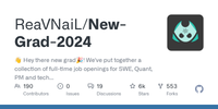 GitHub - ReaVNaiL/New-Grad-2024: 👋 Hey there new grad🎉! We've put together a collection of full-time job openings for SWE, Quant, PM and tech roles in 2024! 🚀