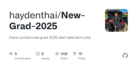 GitHub - haydenthai/New-Grad-2025: Hand picked new grad 2025 start date tech jobs · GitHub