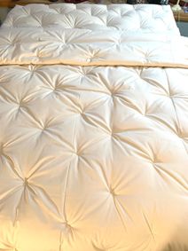 These comforters naturally regulate body temperature while wicking away moisture, ensuring breathability and a restful sleep. No part of this product is sourced from China. Well-suited for those living in warm climates and for warm sleepers. Twin Dimensions are 68” x 86”, 3.6 lbs of wool Full/Queen Dimensions are 86” x 86” 4.5 lbs of wool King Dimensions are 100” x 86”, 5.2 lbs of wool