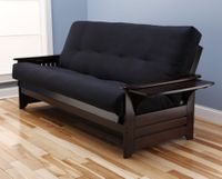 Phoenix Queen Futon Bed w/Mattress Package Espresso by Kodiak The futon is a classic hardwood frame with tray style arms. This unique and versatile queen size futon sofa easily converts to a Bed. This multifunctional piece of furniture can find a home in just about any type of room. No flip mattress design containing active support technology coils with insulator pads. Each mattress contains 1.5" of high density foam and 20 pounds of lofted cotton with each mattress also meeting all CSPC Flammability Standards. Features a 276 coil unit with 13 gauge springs. Features: Solid hardwood constructi