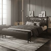 Full/Queen Upholstered Bed Frame with Headboard and Storage Ottoman