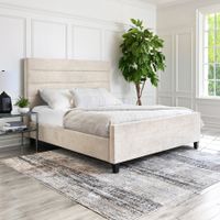 $999.99 Athena Upholstered Queen Bed and Ottoman · Available in Light Gray or Cream · Channel Tufted Headboard · Matching Storage Ottoman · 100% Polyester Textured Fabric · Solid Wood Legs · Rated 4.3 out of 5 stars based on 142 reviews. (142) Compare Product ·