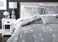 Capture the beauty of this hand sketched tossed floral design in 100% Cotton. Beautifully embellished with white floral bouquets on a deep grey ground reversing to a textured print this set includes duvet, shams and breakfast cushion shell.