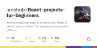 GitHub - ianshulx/React-projects-for-beginners: Are you a beginner eager to enhance your React JS skills? Look no further! This repository is the perfect platform for you to dive into the world of React development and contribute to open source during Hacktoberfest. @Hacktoberfest @ReactJS · GitHub