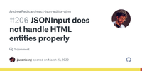 JSONInput does not handle HTML entities properly · Issue #206 · AndrewRedican/react-json-editor-ajrm