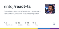 GitHub - rintoj/react-ts: Create React apps using TypeScript 2, WebPack 2, Reflux, Mocha, Chai, with no build configuration