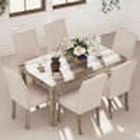 🛒 Features of Larger Dining Sets: ✔ Seating for 4-8 people. ✔ Upholstered or wooden chairs for extra comfort. ✔ Expandable tables for larger gatherings. 💡 Best For: Formal dining rooms, large families, and holiday dinners. Rectangular (seats): 48" ≈ 4 · 60–72" ≈ 6 ·