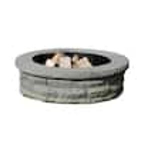 48 in. fire pit kit · attractive old-world look · carbon monoxide · heavy-duty steel · high-density concrete fire-ring block · outdoor landscape · round steel insert · single piece · trapezoid stones · wood burning fire pit · wood burning · 64 romanstack pieces ·