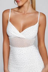 http://imgur.com/9RJN8iM (I'm sorry for the bad photo, It's the only one I have of it) Also the dress has two slits running down the side of either leg. They go up a little higher than mid calf.