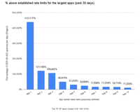 For context on excessive usage, here is a chart showing the average monthly overage, compared to the longstanding rate limit in our developer documentation of 60 queries per minute (86,400 per day):