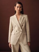 Linen-Blend Double-Breasted Suit Jacket in Neutral