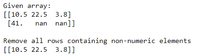 If you want to do something with the nans (should you have them), use numpy.isnan: