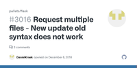 Answer from kkron on Stack OverflowI'm having a similar issue. I've seen it recommended to use request.files.getlist("file[]") or request.files.getlist("file") << this worked for me for 2 files but when I started upload 3 separate files via 3 form elements I would only get 2. So here's the code I'm using right now.