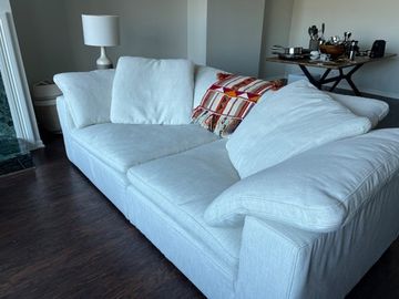 Restoration Hardware Cloud Couch. Selling ling this practically new RH cloud couch. I have a lot of extra pieces from staging homes. It’s 2 corners, 2 Armless and 2 End of Sectional Ottoman’s. The Slipcovers are brand new as well. Size: Luxe Fabric: Washed Belgian Flax Linen Color: White Luxe Corner Chair: 45"W x 45"D x 31½"H Luxe Armless Chair: 43¾"W x 45"D x 31½"H Luxe End-of-Sectional Ottoman: 43¾"W x 45"D x 18½"H