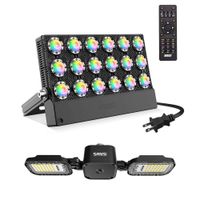100W RGB LED Flood Light +60W Panel LED Grow Light This Set Contains: -1*100W RGB LED Flood Light -1*60W Panel LED Grow Light -1*IR Remote Control (No battery) 100W RGB LED Flood Light +30W Adjustable 3-Head Clip-on LED Grow Light This Set Contains: -1*100W RGB LED Flood Light -1*30W Adjustable 3-Head Clip-on LED Grow Light -1*IR Remote Control (No battery) 100W RGB LED Flood Light -16 Colors & 4 Modes 16 different colors including 5000K daylight color lights;4 kinds of color changing patterns, including flash, strobe, fade,smooth.