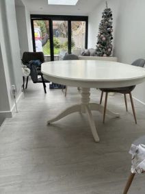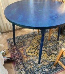When a round table gets too big I think it looses a lot if it's advantages plus "space is a premium" in our house so the small size is attractive.