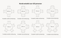The most common round dining table size for 4 people is 42"-48" in diameter. Choose a 48 round dining table set for 4 if possible. This allows 4 chairs to fit neatly underneath the table and push in all the way.