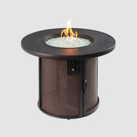 The top-selling product within Round Fire Pit Tables is the Oakland Living 34 in. Round Aluminum Outdoor Propane Fire Table with Fire Beads, Lid and Covers in Copper.