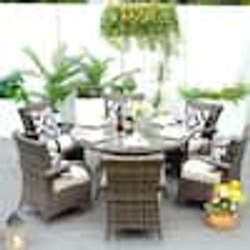Outfit your outdoor oasis with stylish and functional dining sets. Browse a variety of materials, seating styles, and design elements to find the perfect fit.
