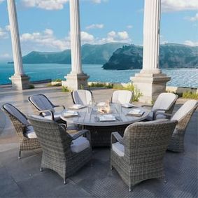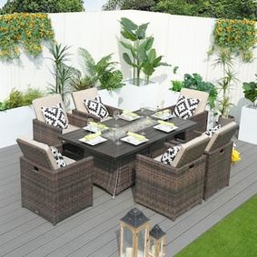 Patio dining sets with fire pits bring warmth and ambiance to any outdoor space. Explore options in various materials and sizes to suit your style.