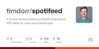 GitHub - timdorr/spotifeed: A simple service to serve up Spotify podcasts as RSS feeds for use in any podcast app.