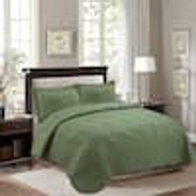 Full/Queen Comforter-Sage Green Cotton Waffle Weave 3 Piece Set With 1 Comforter + 2 Shams | Quilted | Machine Washable
