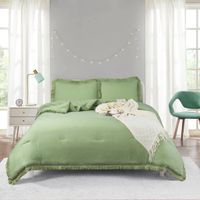 Add a relaxed, minimalist boho style to your bedroom with the tassel comforter set. Romantic tassel with green color add a fresh touch and bring your bedroom to life.Features:● Create Your Boho Style: Featured with tassels on the edge, the elegant comforter set gives you a charming & cute attraction, providing a boho chic feel to your room. ● Handmade Tassel Make Your Room Classy: Tassel fringe adds a unique sense of refinement to this cute comforter set. Each tassel is handmade to ensure an elegant appearance & outstanding quality, bringing you the visual enjoyment of beauty and giving a boho