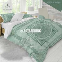 Sage green Boho bedding, Sacred yantra talisman Seed of Life duvet cover set, Elephant mandala duvet cover set, spiritual bedspread