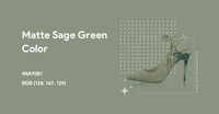 Matte Sage Green has the hex code #8A9381. The equivalent RGB values are (138, 147, 129), which means it is composed of 33% red, 36% green and 31% blue. The CMYK color codes, used in printers, are C:6 M:0 Y:12 K:42.