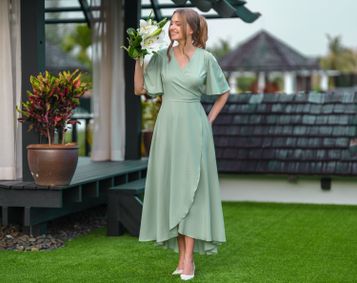 I’m a bridesmaid in a wedding coming up in a few months. I’m a plus size woman, around size US 18. The colour is supposed to be a sage dress, and we’re allowed to pick our dress of choice.