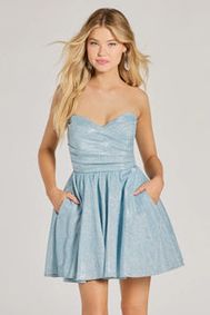 In soft sage green this beautiful short homecoming dress 12584 by Dave and Johnny radiates sophistication. Perfect for homecoming, weddings, and other semi-formal events, this short designer dress has an embroidered sweetheart bodice that adds a vintage vibe. The short green party dress has thin spaghetti straps that provide support before criss crossing the open back and lacing up for a comfy fit. The booty-contouring mini skirt completes the look of this short sage green homecoming dress that is as figure flattering as it is sexy.