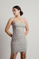 A green satin wrap midi dress with a sleeveless cowl neckline and high-side slit. ... A sage mesh midi dress featuring a cowl neckline, ruched sides, and adjustable tie-back straps.