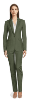 Ideal for business, this suit made in sage green , features a tailored slim fit, with notch lapels, 1... - Made to measure - Free Shipping Ideal for business, this suit made in sage green , features a tailored slim fit, with notch lapels, 1 button, flap pockets and 2 buttons sleeve buttons. Cut and tailored from Linen fabric specifically with women in mind, this elegant slim fitting sage green suit accentuates your woman's figure. The fully lined, flat-front pants with straight side pockets and front zipper creates a classic suit for all occasions. · At sumissura every single suit is made to