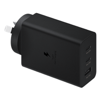 Samsung 65W Power Adapter Trio EP-T6530NBEGAU - Black Experience the power and versatility of a triple port charger. Get 3 devices charging all at the same time Universal Compatibility Fast, safe and stable