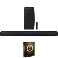 Samsung 5.1.2 channel soundbar | With wireless subwoofer - 11 Speakers total - Integrated center speaker - True Dolby Atmos sound - 360W total - Alexa integrated - Wireless Dolby Atmos - Dolby TrueHD - Dolby Digital Plus - Dolby Mat (Atmos Music) - DTS :X - DTS 5.1 channels - Q-Symphony - Bluetooth - Wi-Fi - Adaptive sound mode - SpaceFit Son Pro - Tap Sound - Voice enhance - HDR 10+ - 4K HDR Video Pass - Compatible with SWA-9500S rear speakers - HDMI cable and wall-mounting kit included - Remote control - Open box