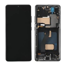 LCD with Touch Screen for Samsung Galaxy S21 Ultra 5G - Black (display glass combo folder) | With Frame | OLED -
