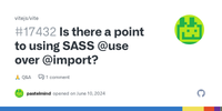Answer from abney317 on Stack OverflowAs week of Mar 06 to Mar 12, the npm downloads of the sass and node-sass packages are 11,700,729 and 2,831,234 respectively, meaning we have reached 80.5% adoption rate for Dart Sass, which is above the target for making the deprecation @import current.