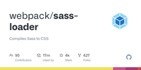 sass-loader- Transforms Sass to CSS. (Input: Sass, Output: CSS)css-loader- Transforms CSS to a JavaScript module. (Input: CSS, Output: JavaScript)style-loader- Injects the CSS, that is exported by the JavaScript module, into a<style>tag at runtime. (Input: JavaScript, Output: JavaScript).