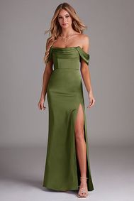 Olive Stretch Satin Bridesmaid Dresses | Azazie