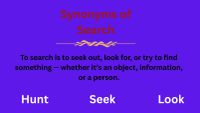 July 16, 2025 - The synonyms for search we’ll explore reflect these shades of meaning, from glances to deep investigations, from physical hunts to mental quests. Definition: To direct your eyes toward something to find it. Best For: Casual or everyday use. Example: I looked everywhere for my keys but couldn’t find them. Definition: To attempt to find or obtain something. Best For: Formal or spiritual contexts.