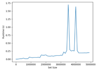 (Looking at your Python code) Python sets are implemented with hash tables. Read through this interesting thread. See also this implementation which uses sorted vectors instead.