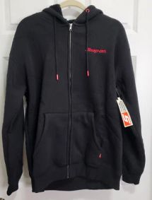 Comfortable sherpa-lined full-zip hoodie featuring drawstring hood, logo patch on sleeve, and side and chest-zip pockets. Do not iron faux fur, do not dry clean. Tumble dry low. Faux Fur:100% Polyester / Body:89% Cotton, 11% Polyester.