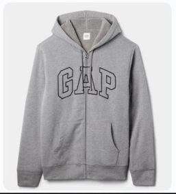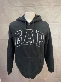 Black front zip hoodie with GAP logo.