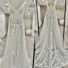 We offer 300+ beautifully designed wedding dresses and provid sizes 0-30 and custom sizing to choose from.