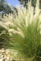 Ornamental grass have become popular recently . They add movement from a small breeze and tall grasses create a backdrop for smaller plants/flowers to showcase. There are so many miscanthus styles, tall , short , many colors, variegated blades and easy breezy care. More on garden.org