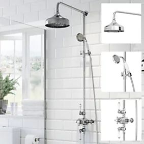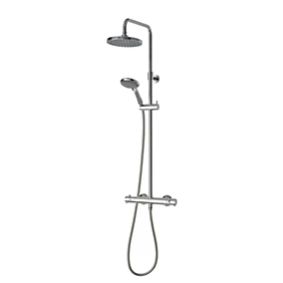 For improved safety and comfort, choose a mixer shower with a thermostatic shower valve which protects you against sudden temperature changes if someone uses water elsewhere in the house, letting you simply set and forget the temperature. As mixer showers use a hot water input, you will see best results when used with a higher pressure water system, such as a water system with a combi boiler or a pumped gravity system.Read more ... Grohe Vitalio Start 250 Chrome effect Wall-mounted Thermostatic Shower kit with 2 heads & 1750m hose length