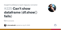 Can't show dataframe (df.show() fails) · Issue #225 · GoogleCloudDataproc/spark-bigquery-connector