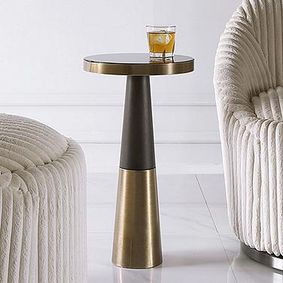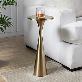 Save to FavoritesExpressionist Burnished Brass Cast Aluminum 12" Drink Table ... Clearance $249.97 reg. $399.00 ... Add a warm metallic glow to your living room, bedroom or home office with an antique brass accent table. Use one as a bedside table, or group multiples in front of sofas and loveseats as a substitute for a coffee table.