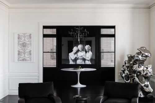 December 5, 2018 - In this modern black and white dining room from Fashion Squad, the chairs are Fritz Hansen Grand Prix and the candle holder is Svenskt Tenn. ... In the home of designers Kevin Roberts and Timothy Haynes, the black and white living room showcases 1950s armchairs by Joseph-André Motte, upholstered in a Holland & Sherry fabric.